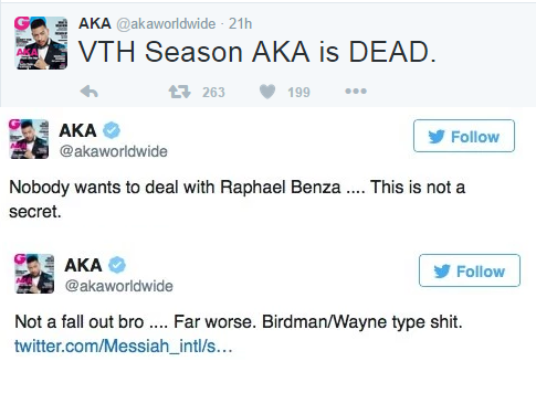 South African hip hop act, AKA has parted ways with his management company, VTH Season after a fallout which he says is similar to Birdman/Lil Wayne type of fight. The rapper who didn’t reveal details of the split from his manager, Raphael Benza and his management company took to his Twitter account, to make the shocking announcement to his fans. See his Tweets after cut….
