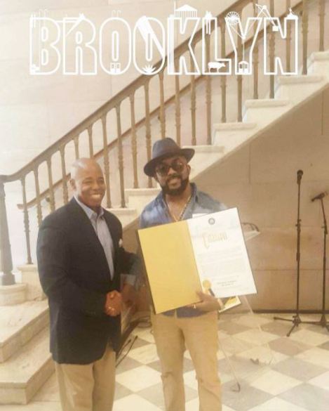 Nigerian singer, Banky W, has received a state recognition in the form of Citation certificates given to him by Eric L. Adams, the President of the Borough of Brooklyn. He was awarded for his contribution to his community and successful career.