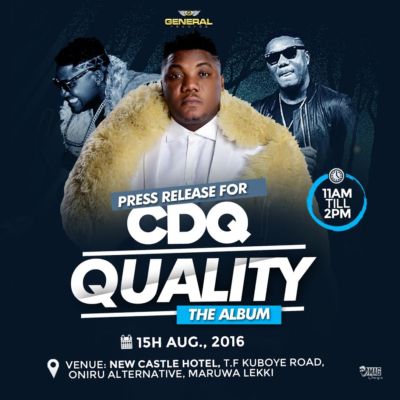 Part of the activities planned for the briefing, is an interactive session with the artist, CDQ and the producer, Masterkraft on expectations from the ‘Quality’ album. Going by his recent releases, CDQ has successfully profiled himself to becoming a most sought after artiste with singles reaching a high status in commercial acclaim, as well as features with other artistes the caliber of Wizkid, Olamide and Skales.