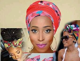 Wrap your scarf in a triangle way with the penciled end in the back, twist the end as you wrap them around your head crossing them over in the back and pulled over in the front to tie a knot then leave some hair texture in the front.