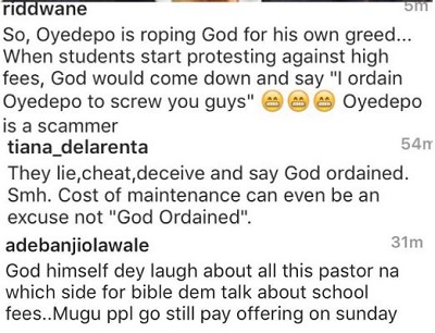 Another Instagram user, @dalacrimwrote: “Jesus healed people without collecting shingbai and here is another deceiver claiming school fees has God’s approval. After building an empire with masses’ contribution.